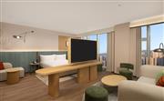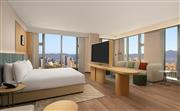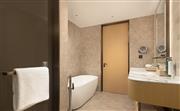 花园豪华大床房(浴缸)位于14-19层,55㎡的现代开放布局空间向外纵览,享受与外界繁杂隔绝的宁静。房间拥有全景落地窗,可享高楼层城市景观。房间采用环保装修材质,布局温馨,超宽敞的客房有1张1.8m宽的舒适大床,配备金可儿床垫、迷你小冰箱、可升降办公桌智能化设施以及浪漫雅致的独立浴缸,打造惬意舒适的居住体验。