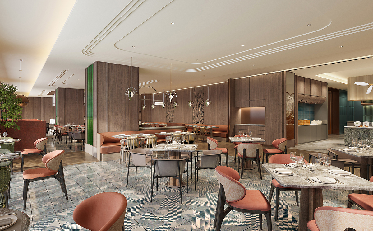 味蕾环球之旅:“Hui·Wei” 全日制餐厅开放式厨房现场烹制,从陇原风味到寰宇美馔,开启舌尖上的 discovery 旅程;位于酒店2层,可容纳100位客人同时用餐。
