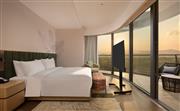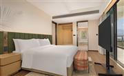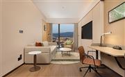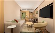 花园豪华套房保材质装修,内设独立客厅与卧室,有舒达床垫、智能设备、商务休闲皆适配 。