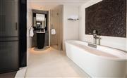 花园豪华海景总套位于5层,采用低碳环保材质装修,内设独立客厅与卧室,客用盥洗室既保障了主人的私密性,又为访客提供了尊崇礼遇,恰似传统礼制中'内外有别'的现代诠释,让空间的分隔成就宾主尽欢的雅致。观景阳台独享酒店至高点,东望洛迦山卧佛剪影,西瞰千步金沙落日熔金,晴日可遇“海市蜃楼”奇观。