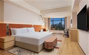 豪華江景大床房位于9-13層,46㎡起的現代開放布局空間向外縱覽,還可欣賞到絕美江景,享受與外界繁雜隔絕的寧靜,寬敞的客房配備金可兒豪華床墊與床上用品、智能升降桌,65英寸高清電視等設施與用品為您帶來便利。