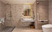 花園無障礙房位于9層,以 51㎡起的現代開放布局為基底,從空間設計到設施配置,全方位考量無障礙居住需求,配備金可兒豪華床墊搭配高品質床品,床體高度適配無障礙需求,智能升降桌無論是輪椅使用者辦公、用餐,還是站立狀態下閱讀、整理,都能精準匹配舒適姿勢,65 英寸高清電視搭配便捷操控設計,遠距離也能輕松操作,為休憩時光增添更多愜意。從通行到使用,每一處細節都為無障礙生活量身定制,讓舒適與便捷觸手可及。