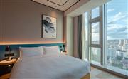 客房面積30平米起,大床尺寸1.8M,客房內設置了藝術造型燈、干濕分離的衛浴空間、舒達床墊以及多功能衣柜和置物柜,各空間巧妙布局,從而各功能得到最大化運用;柔軟厚實的床品、雙層窗簾以及隔音門等悉心設計以及美國彼得羅夫沐浴品牌幫助旅客一天行程勞頓后可以擁有舒適的休憩時光。