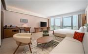 花園豪華大床房位于8-11層,55㎡起的現代開放布局空間向外縱覽,享受與外界繁雜隔絕的寧靜。寬敞的客房配備金可兒豪華床墊與斯特福床上用品、可旋轉65英寸高清電視、可升降辦公桌等設施與用品為您帶來便利。