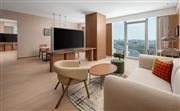 豪華套房位于9-11層,108㎡起的現代開放布局空間向外縱覽,享受與外界繁雜隔絕的寧靜。寬敞的客房配備金可兒豪華床墊與斯特福床上用品、可旋轉65英寸高清電視等設施與用品以及獨立客廳為您帶來便利。