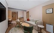 入住这间舒适的套房,设有特大床卧室和65英寸高清电视,尽享时尚。独立起居室另配 65 英寸高清有线电视,供您休闲娱乐。在办公桌前舒适工作,利用免费无线上网随时保持联络。典雅的浴室配有双梳妆台和卫浴用品,供您舒爽身心、恢复活力。房间可容纳 2 人入住。