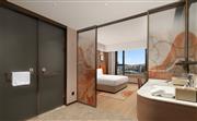 黄河景观,升降式办公桌,迷你冰箱,65寸电视,落地窗,无线充电器,沙发