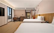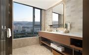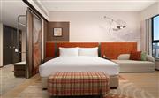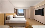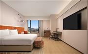 客房配备希尔顿花园标志性云端睡床与灵活办公区,升降式办公桌,迷你冰箱,65寸电视,落地窗,无线充电器,沙发