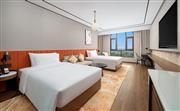 高层双床客房位于4-6楼,38㎡起的现代开放布局空间向外纵览。宽敞的客房配备金可儿床垫与床上用品、65英寸高清电视等设施与智能设备,打造惬意舒适的居住体验。