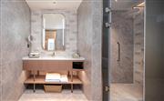 在这间宽敞的豪华套房中放松,配有浴缸。在King Koil特大床上享受安稳的睡眠。在宽敞的高度可调节书桌和人体工学椅子上舒适地工作。通过免费Wi-Fi保持连接,并在高清电视上观看节目。其他设施包括冰箱、可调节空调、保险箱和蒸汽熨斗,让您有宾至如归的感觉。可睡3人(可能需额外收费)。