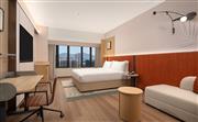 大床房位于22层,35平方米,现代开放布局空间向外纵览,享受与外界繁杂隔绝的宁静。宽敞的客房配备斯得福华床垫与床上用品、65英寸高清电视等设施与用品为您带来便利。