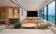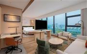 豪华房配有一张特大床和沙发床,适合额外宾客入住,让您尽享舒适便利。在提供大书桌和符合人体工学的椅子的工作区保持高效。通过免费无线上网尽享沟通无限。其他设施包括迷你冰箱、茶包和咖啡包和高清电视。可住宿3人。