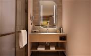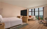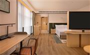 客房面积43㎡,配有一张特大床。房间配有符合人体工学的躺椅,65英寸液晶电视和高速互联网。干湿分离的盥洗室,让您卸除旅途疲惫。智能设施如电动窗帘、智能马桶增加了入住舒适性。