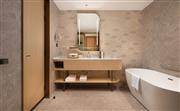 客房面积64㎡,拥有独立起居室。房内配有一张特大床、65英寸液晶电视和高速互联网。干湿分离的盥洗室,让您卸除旅途疲惫。智能设施如电动窗帘、智能马桶增加了入住舒适性。